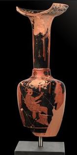 ΜΕΛΑΝΟΜΟΡΦΟΣ ΔΙΝΟΣ (ΑΓΓΕΙΟ ΟΙΝΟΥ)Φερώνυμο έργο του «Ζωγράφου της Ακρόπολης 606» (570-560 π.Χ., πηλός).