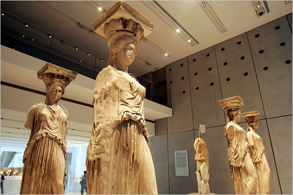 Αγάλματα νέων γυναικών, που είχαν προσφερθεί στην Αθηνά για ένα μεγάλο χρονικό διάστημα. Καμία Κόρη δεν ήταν όμοια με μία άλλη. Ο διαφορετικός τρόπος παρουσίασης της κόμης τους και της πτύχωσης των χιτώνων τους, δίνουν στον επισκέπτη την ευκαιρία να θαυμάσει την εξέλιξη της γλυπτικής στην αρχαία Ελλάδα.