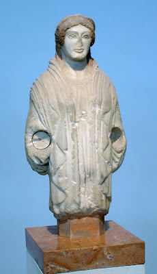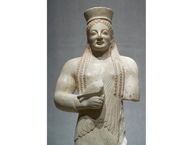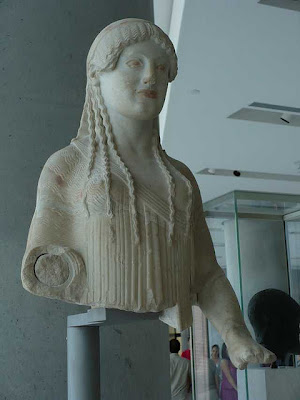 Για ελάχιστα από τα αρχαϊκά γλυπτά της Ακρόπολης σώζονται τα βάθρα στα οποία ήταν τοποθετημένα και όπου συνήθως αναγράφεται το όνομα του αναθέτη ή του γλύπτη που τα φιλοτέχνησε. Τα έργα αυτά θεωρούνται «επώνυμα», αφού έχουν πλέον ένα είδος ταυτότητας, όπως είναι η Κόρη του (γλύπτη) Αντήνορα, που την αφιέρωσε στο ιερό της Αθηνάς ο Νέαρχος, όπως αναγράφεται στο επίκρανο της βάσης της. Άλλης μιας Κόρης, της λεγομένης του Ευθυδίκου, σώζεται κυκλική βάση, που γράφει ότι αφιερώθηκε από τον Ευθύδικο, τον γιο του Θαλιάρχου. Επώνυμο έργο είναι επίσης «Ο Μοσχοφόρος» (570 π.Χ.), που στη βάση του γράφει «Ρόμβος ανέθεκεν ο Πάλο», και το «Παιδί» (480 π.Χ.) του Κριτία, που αποδίδεται στον γλύπτη χωρίς να έχει βρεθεί η βάση του. Όλα τα υπόλοιπα αρχαϊκά γλυπτά της Ακρόπολης φέρουν ονόματα συμβατικά, που τους έδωσαν οι αρχαιολόγοι, όπως η «Πεπλοφόρος», επειδή φέρει στους ώμους της ένα κομψό κεντημένο πέπλο, ή η μικρόσωμη «Χιώτισσα», στολισμένη με περίτεχνα ρούχα και κοσμήματα, που έχει συνδεθεί με την τέχνη της Χίου. Έχουμε επίσης την «υψηλόκορμη», την Κόρη με την ιωνική ενδυμασία από τη Νάξο, την Κόρη με το κυδώνι κ.ά. Έχει σημασία λοιπόν ότι η «μικρή περίεργη Κόρη» αποκτά τώρα την ταυτότητα που στερούνται πολλές ωραιότερες από αυτήν, που φιγουράρουν καμαρωτές στον πρώτο όροφο του μουσείου. Σύμφωνα με όλες τις ενδείξεις, ετοιμάζεται να επανεμφανισθεί στο κοινό πριν από τα Χριστούγεννα, διεκδικώντας λίγων λεπτών δημοσιότητα στα μέσα ενημέρωσης. Έτσι, ίσως πάψουμε να την αποκαλούμε απαξιωτικά «Πελοποννήσια» και να γίνει η Κόρη του Λυσία. Αυτή η Κόρη ασφαλώς θα είχε κάποιο ζωντανό πρότυπο στην εποχή της. Αλλιώς, ποιος καλλιτέχνης θα διάλεγε να φτιάξει έναν τόσο ιδιαίτερο γλυπτό; Τη βλέπουμε να φοράει έναν χιτώνα με μακριά μανίκια, που μοιάζει με χοντροπλεγμένο πουλόβερ, και από κάτω ένα λεπτό ρούχο ζωσμένο στη μέση. Τα ενδύματά της δεν είναι σαν των άλλων κοριτσιών, λεπτοδουλεμένα, αραχνοΰφαντα, κεντημένα στα άκρα ή στολισμένα με κουμπάκια και φουντίτσες. Όλα αυτά συνηγορούν ώστε να μη θεωρείται έργο πρώτης γραμμής αλλά και λόγω της αδεξιότητας με την οποία σηκώνει μια άκρη του ρούχου της. «Αδεξιότητα χαρακτηρίζει και όλο το άγαλμα, γεγονός που δείχνει ότι ο γλύπτης δεν είχε αφομοιώσει καλά τους κανόνες της αρχαϊκής γλυπτικής», γράφει και η κ. Τριάντη, η οποία, παραδόξως, δεν κλήθηκε να μελετήσει το έργο αν και αναγνωρίζεται ως κορυφαία στην αρχαιοελληνική γλυπτική.