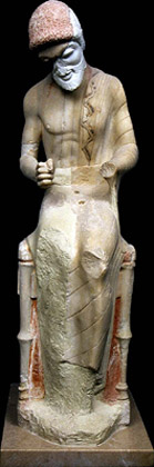 Άγαλμα της Αθηνάς που βρέθηκε το 1821 στη Β. πλαγιά της Ακρόπολης. Η θεά είναι καθιστή σε θρόνο χωρίς ερεισίνωτο, με εγκοπές για πρόσθετα στηρίγματα των χεριών, και πατάει σε πλίνθο. Φορεί πολύπτυχο χιτώνα και αιγίδα με χάλκινα φίδια, άλλοτε ένθετα σε οπές, και μεγάλο γοργόνειο στο κέντρο. Παρά τη φθορά της επιφάνειας, η μορφή έχει αίσθηση ζωντάνιας, ασυνήθιστη στα καθιστά αγάλματα της αρχαϊκής εποχής. Από τη θέση εύρεσης και την έντονη διάβρωση της επιφάνειας που δείχνει μακρά έκθεση στο ύπαιθρο, ταυτίζεται με το άγαλμα που είχε δει κοντά στο Ερέχθειο ο Παυσανίας τον 2ο αιώνα μ.Χ., με την υπογραφή του γλύπτη Ενδοίου και του αναθέτη Καλλία. Το έργο χρονολογείται στα 530-525 π.Χ.
