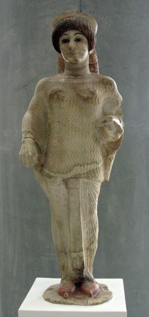 Για ελάχιστα από τα αρχαϊκά γλυπτά της Ακρόπολης σώζονται τα βάθρα στα οποία ήταν τοποθετημένα και όπου συνήθως αναγράφεται το όνομα του αναθέτη ή του γλύπτη που τα φιλοτέχνησε. Τα έργα αυτά θεωρούνται «επώνυμα», αφού έχουν πλέον ένα είδος ταυτότητας, όπως είναι η Κόρη του (γλύπτη) Αντήνορα, που την αφιέρωσε στο ιερό της Αθηνάς ο Νέαρχος, όπως αναγράφεται στο επίκρανο της βάσης της. Άλλης μιας Κόρης, της λεγομένης του Ευθυδίκου, σώζεται κυκλική βάση, που γράφει ότι αφιερώθηκε από τον Ευθύδικο, τον γιο του Θαλιάρχου. Επώνυμο έργο είναι επίσης «Ο Μοσχοφόρος» (570 π.Χ.), που στη βάση του γράφει «Ρόμβος ανέθεκεν ο Πάλο», και το «Παιδί» (480 π.Χ.) του Κριτία, που αποδίδεται στον γλύπτη χωρίς να έχει βρεθεί η βάση του. Όλα τα υπόλοιπα αρχαϊκά γλυπτά της Ακρόπολης φέρουν ονόματα συμβατικά, που τους έδωσαν οι αρχαιολόγοι, όπως η «Πεπλοφόρος», επειδή φέρει στους ώμους της ένα κομψό κεντημένο πέπλο, ή η μικρόσωμη «Χιώτισσα», στολισμένη με περίτεχνα ρούχα και κοσμήματα, που έχει συνδεθεί με την τέχνη της Χίου. Έχουμε επίσης την «υψηλόκορμη», την Κόρη με την ιωνική ενδυμασία από τη Νάξο, την Κόρη με το κυδώνι κ.ά. Έχει σημασία λοιπόν ότι η «μικρή περίεργη Κόρη» αποκτά τώρα την ταυτότητα που στερούνται πολλές ωραιότερες από αυτήν, που φιγουράρουν καμαρωτές στον πρώτο όροφο του μουσείου. Σύμφωνα με όλες τις ενδείξεις, ετοιμάζεται να επανεμφανισθεί στο κοινό πριν από τα Χριστούγεννα, διεκδικώντας λίγων λεπτών δημοσιότητα στα μέσα ενημέρωσης. Έτσι, ίσως πάψουμε να την αποκαλούμε απαξιωτικά «Πελοποννήσια» και να γίνει η Κόρη του Λυσία. Αυτή η Κόρη ασφαλώς θα είχε κάποιο ζωντανό πρότυπο στην εποχή της. Αλλιώς, ποιος καλλιτέχνης θα διάλεγε να φτιάξει έναν τόσο ιδιαίτερο γλυπτό; Τη βλέπουμε να φοράει έναν χιτώνα με μακριά μανίκια, που μοιάζει με χοντροπλεγμένο πουλόβερ, και από κάτω ένα λεπτό ρούχο ζωσμένο στη μέση. Τα ενδύματά της δεν είναι σαν των άλλων κοριτσιών, λεπτοδουλεμένα, αραχνοΰφαντα, κεντημένα στα άκρα ή στολισμένα με κουμπάκια και φουντίτσες. Όλα αυτά συνηγορούν ώστε να μη θεωρείται έργο πρώτης γραμμής αλλά και λόγω της αδεξιότητας με την οποία σηκώνει μια άκρη του ρούχου της. «Αδεξιότητα χαρακτηρίζει και όλο το άγαλμα, γεγονός που δείχνει ότι ο γλύπτης δεν είχε αφομοιώσει καλά τους κανόνες της αρχαϊκής γλυπτικής», γράφει και η κ. Τριάντη, η οποία, παραδόξως, δεν κλήθηκε να μελετήσει το έργο αν και αναγνωρίζεται ως κορυφαία στην αρχαιοελληνική γλυπτική.