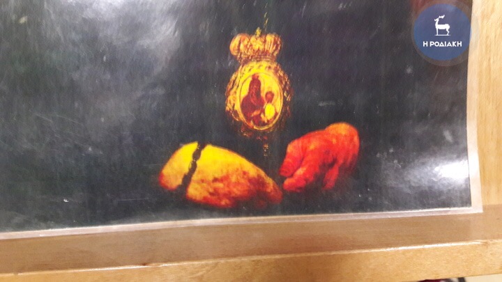 Όπως φαίνεται και από το φωτορεπορτάζ που εξασφάλισε η «ΡΟΔΙΑΚΗ» στο κάτω μέρος της εικόνας του Αγίου Νεκταρίου φαίνονται να είναι τα χέρια του κόκκινα!