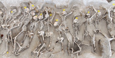 Excavators at the Phaleron Delta necropolis have uncovered the remains of 80 men, shackled together at their wrists, lying in a mass grave. The most recent osteological studies have determined that the majority of the men were between 20 and 30 years old, although four were much younger, and that all 80 had been killed in the same manner—with a fatal blow to the head. The discovery of two small vases buried with them has allowed archaeologists to date the grave to the mid-to-late seventh century B.C., suggesting to project director Stella Chrysoulaki that the men were executed in the course of one of these attempts to gain political primacy. “For the first time,” Chrysoulaki says, “we can illustrate historical events that took place during the struggle between aristocrats in the seventh century and led, through a long process, to the establishment of a democratic regime in the city of Athens.”