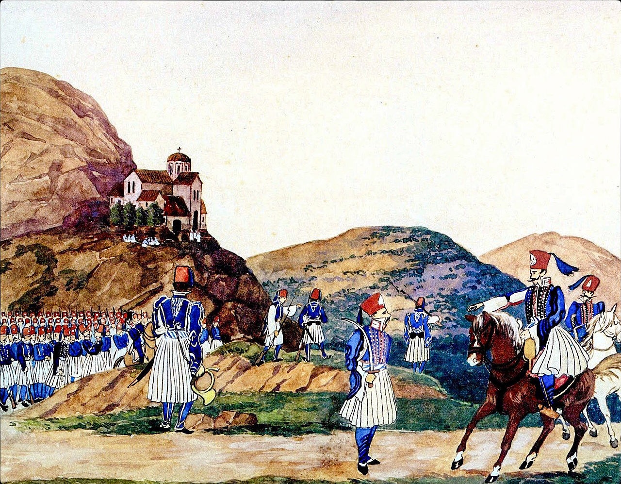 In 1833, after the arrival of King Otto, the Greek Army was organized along new lines. The Bavarian soldiers that had come with Otto formed the majority of the “European” Line Infantry battalions (Greek: Τάγματα Γραμμής; Tágmata Grammís).