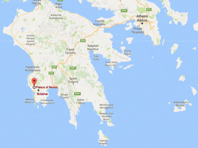 Map showing Iklaina and the Palace of Nestor in mainland ancient Greece Google Maps, elaboration by Haaretz.