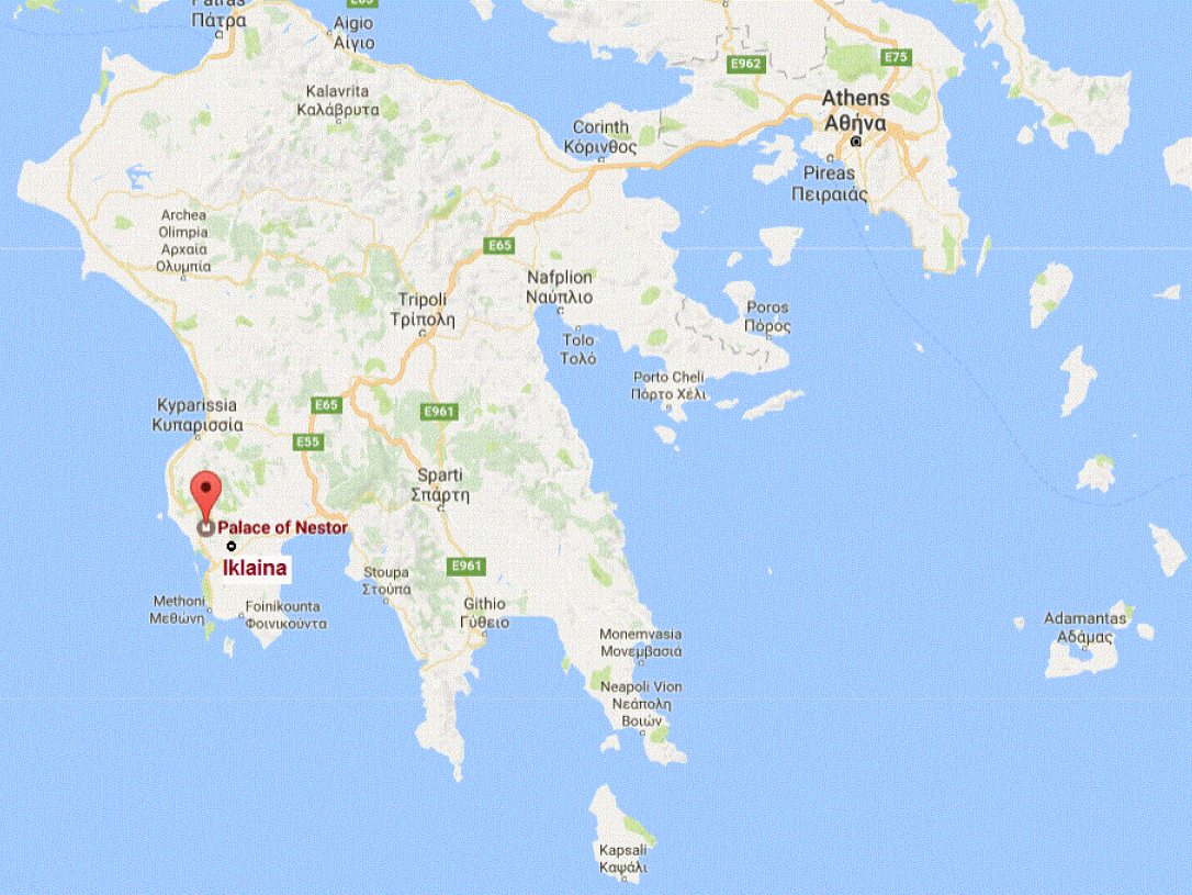 Map showing Iklaina and the Palace of Nestor in mainland ancient Greece Google Maps, elaboration by Haaretz.