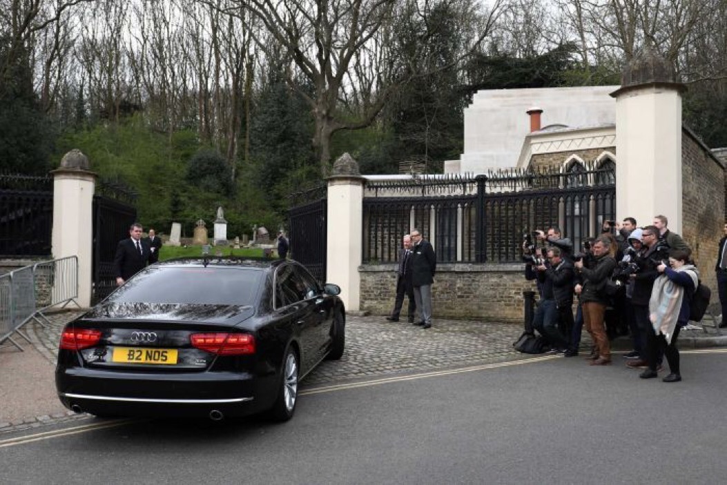 George’s body was already inside the chapel of rest when the invited guests started to arrive in chauffeur driven limousines shortly before 2pm.