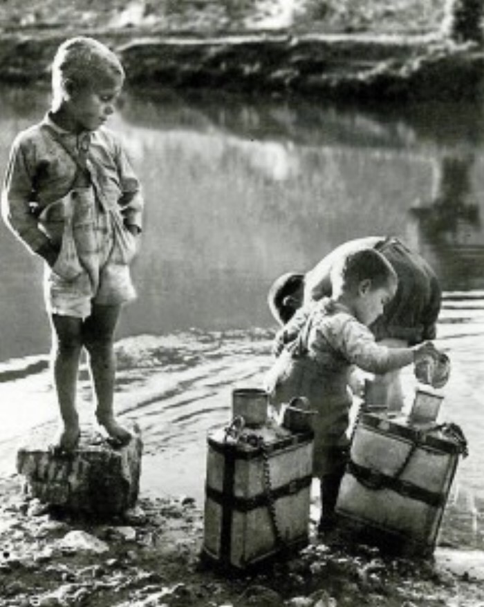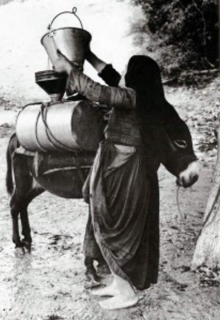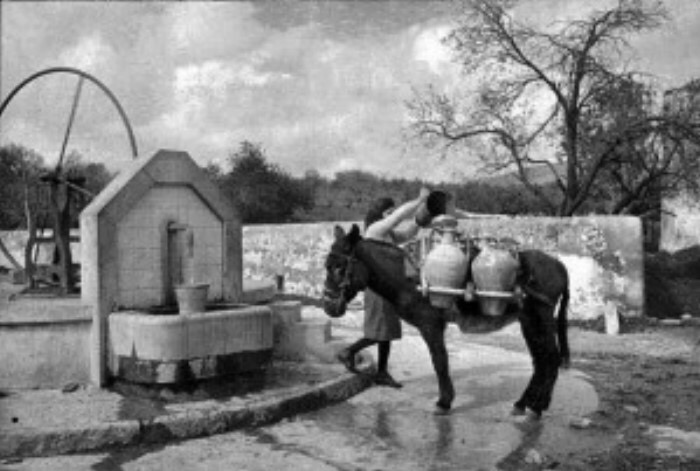 Οι τυχεροί που είχαν ζώα φόρτωναν τους τσίγκινους τενεκέδες και το μετέφεραν μεγαλύτερες ποσότητες.