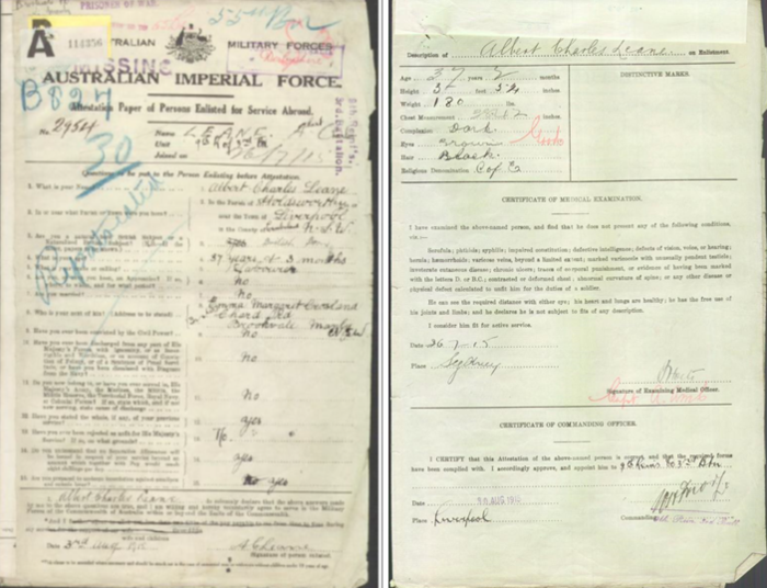 Albert Leane, who was born in 1877 in Holsworthy, New South Wales, had signed up at the age of 37 the year before the battle. He had sailed from Sydney to Egypt to join the 55th Battalion and then shipped out to the Western Front.