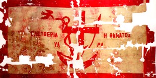 | Σημαία του Αρείου Πάγου υψώθηκε στην ανατολική Ελλάδα στις 19/1/1821 . Σταυρός = πίστη , καρδιά = αγνότητα επανάστασης , άγκυρα = σταθερότητα του σκοπού της ελευθερίας . | Αυτή θα μπορούσε να είναι η σημερινή μας σημαία αφού είχε προταθεί από τον Ρήγα (1757-1798) ως σημαία της “Ελληνικής Δημοκρατίας” . Βλέπετε το ρόπαλο του Ηρακλή και τρεις σταυρούς . | Κυμάτιζε από το 1431 μέχρι και το 1639 σε Πελοπόννησο και Ηπειρο . Γνωστή και ως σημαία των Σπαχήδων , η σημαία είχε στην μέση τον Άι Γιώργη . | Η σημαία του Κορκονδείλα Κλαδά. Υψώθηκε το 1464 στην Πελοπόννησο , το 1479- 1481 κυμάτιζε στην Μάνη και το 1482 στην Χιμάρα .Αποτελεί μία από τις πιο γνωστές Ελληνικές σημαίες των σκλαβωμένων Ελλήνων . |